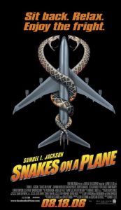Snakes on a Plane is, above all, the most critic-proof movie ever made. There isn’t a negative assessment that could hold, nor a flaw that would stick. Given the advance buzz, internet obsession, and fanatical fan base that rivals the Star Wars army of virgins, there isn’t a single thing that could be said to dissuade these people from declaring it the greatest piece of entertainment in the history of the medium. The studio had them at the title, and even star Samuel L. Jackson signed the deal based solely on it, script be damned. And he was right to damn it, as it is sloppy, riddled with clichés, obvious, predictable, and so preposterous as to make satire the height of redundancy.