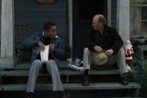 The story is always on auto-pilot, so giving you the highlights is a snap. Bullies pick on Radio only to be punished, which then leads to the big “change of heart” scenes. This occurs no less than three times. Radio also gets the game ball after the last game, apparently for not running out on the field naked and masturbating on the 50-yard-line. Radio is called a “distraction” by one of the school’s biggest boosters, who later appears in the big finale where the Coach resigns in protest. There are several scenes in the local barbershop, where all of the customers are gossiping old men who only seem to care about high school football. At least one of such men, per custom, is wearing an article of clothing indicating his status as a veteran. Radio is arrested by a rookie cop who doesn’t seem to be aware of the policy that allows screeching retards emotionally crippled to roam the streets with shopping carts full of expensive merchandise. But wouldn’t you know it, Radio is handing out Christmas presents to his neighbors. Radio’s mother dies of a heart attack, which brings about another crisis. Will he have to be institutionalized? Will Coach take him in? Interestingly enough, this issue is never resolved, as we never learn where he lives after his mother’s death, although I’m assuming wherever it is, South Carolina taxpayers are paying for it.