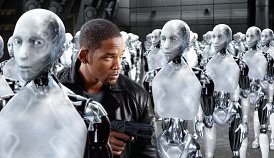There’s this big brain robot named VIKI that realizes humans are killing themselves through the usual ills of war, pollution, etc. So, it looks to law one, specifically the part about robot inaction and decides to take action–saving humans from themselves. Which may lead to some loss of human life, but it is going for the greater human good. The movie terms it as, “the created protecting the creator.” Of course you don’t