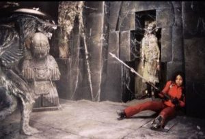 • As it happens, it is not just a pyramid they discovered, but a super-pyramid. Forget about the Alien-breeding chamber in the basement. Every so often, um, how to explain this… the walls reassemble themselves like a puzzle. So, all the humans–and the beasties trying to kill them–are trapped in an ever changing maze. The fact that this is true, besides being an Indian Jones rip-off, did little if anything for the plot. Well, I guess it separated the humans so that they could get killed off even faster (ninety percent of the humans die in a six-minute time span) But, the shape-shifting pyramid did provide the single biggest laugh of the film. Speedy archeology dude deduces that since the Aztecs used the metric system, the walls will get rearranged every ten minutes. I guess the old metric system was based on sixty-second time intervals. I mean, what a load of crap! It means that Anderson (who also wrote AVP) is either too stupid too realize that the metric system has nothing to do with time, or he is so cynical that he just didn’t give a fuck. I’m torn between those two options. However, Erich and I were very nearly on the floor in hysterics.