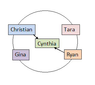 Christian is producing a movie, and has decided to cast his assistant Gina’s boyfriend, Ryan (Nolen Gerard Funk), as the lead. Gina (Amanda Brooks) and Ryan come across as two of the dullest people on Earth, except for one small detail – Ryan is sleeping with Tara! OMG! Turns out, Ryan and Tara dated previously, but it ended when Tara realized that dating a bartender/struggling actor was bad for her image. Now they’re back in the saddle and in love again. MEANWHILE – Christian is banging a yoga instructor/struggling actress named Cynthia, who happens to know Ryan from acting class! Man, small world! And what’s Gina doing during all of this? I don’t know; probably out buying cocaine for Christian. Confused? Here, I made a helpful diagram: