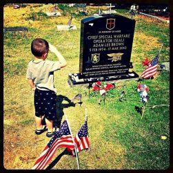 A Corpsman was summoned, and he found Adam bleeding profusely. He had been shot multiple times under his left arm and through his abdomen. Surveying him for other possible wounds, the Corpsman cut off Adams pants. His Teammates stopped in their tracks for a second, there they were, the batman underwear his kids had bought him for his birthday, in place just as promised. By this time, two fellow SEALs were keeping pressure on Adams wounds they best they could.”Hang in there buddy!”, they implored. “I’m okay, I’m okay,” Adam replied as he closed his eyes. Adam Brown had died.