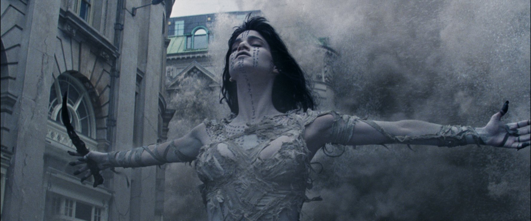 (Side note: For a movie trying to convince everyone it has nothing to do with Fraser’s flick, it borrows heavily from it. Including the reconstitution thing, her face appears in a sand storm, the hero fights a bunch of animated skeleton warriors with a club, Nick and Chris are both soldiers searching for buried treasure, the hero falls for a hot Egyptologist with a British accent, a goofy character doing the bidding of the villain, and the villain is trying to resurrect someone).
