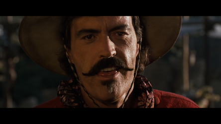Val Kilmer as Doc Holliday was a pale, pasty, feverish, sweaty and almost always drunken pisser. He was an enigma who had a deceptive, charming and amiable presence. In reality, he was about as innocuous as a pissed-off cobra with AIDS. His tongue was a convincing as his six-shooters and those who miscalculated his deadliness paid dearly. I cannot say enough about the performance of Val Kilmer in Tombstone. He steals every scene and is an expert at dancing with death. Stealing the show from this outstanding cast was quite a feat, but Val Kilmer did it with such enjoyable and seamless ease.