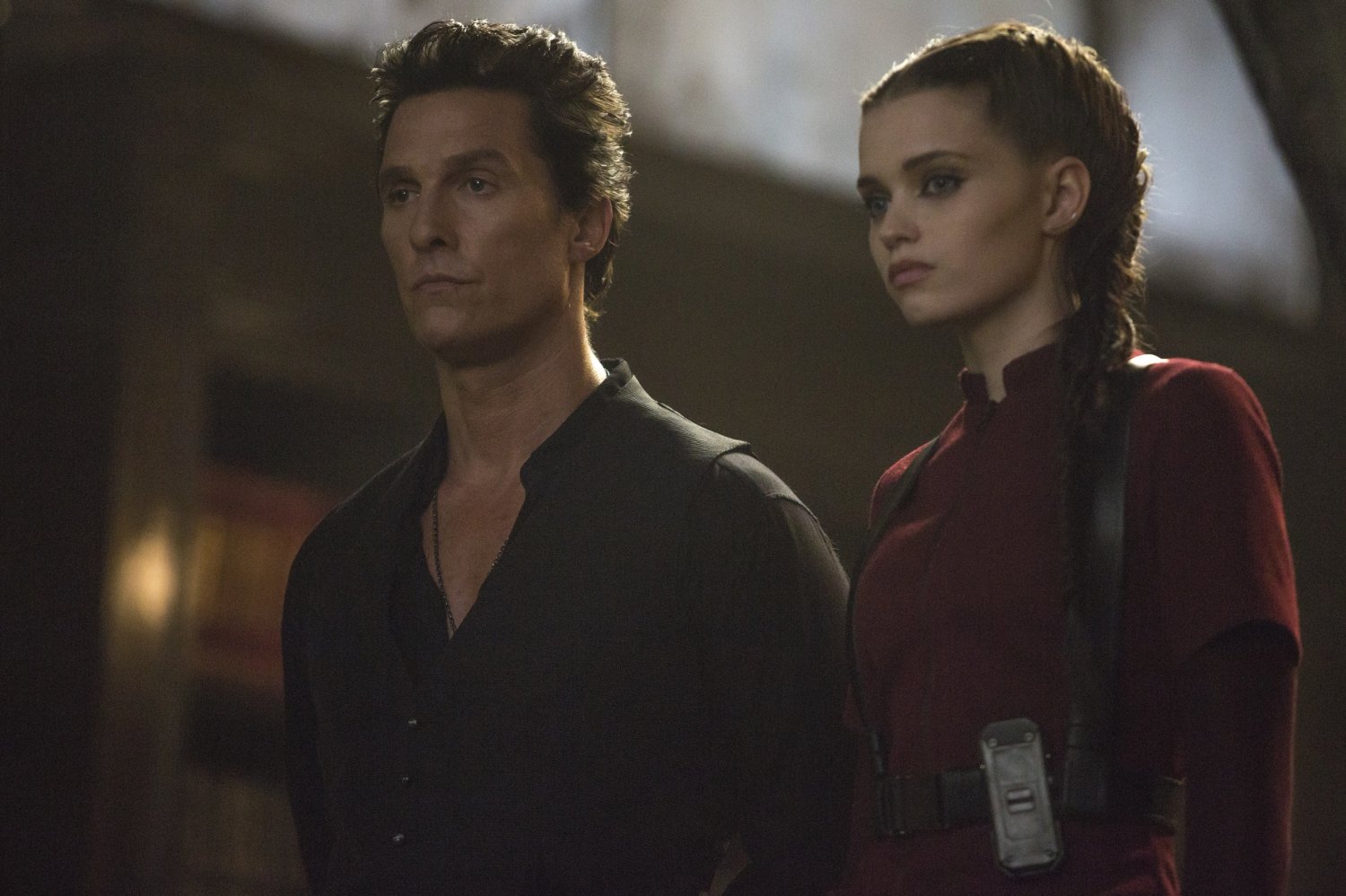 The slack I’m cutting is mainly for three reasons. One – the casting was very good. Idris Elba nails Roland and Tom Taylor is Jake to a tee. The two of them carry this movie and, despite the short running time, create decently fleshed-out characters. McConaughey is also good, but he didn’t quite make it all the way to menacing. Oh, he looks the part and comes close, but his Walter comes off a little flat. Making up for it, the folks playing Walter’s henchmen (the Low Men) really look the part, especially Abbey Lee Kershaw and Jackie Earle Haley, both playing Walter’s lieutenants.