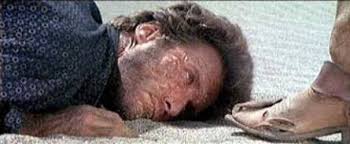 Blondie slowly walks over to him, he takes off his large trench coat and lays it gently over the dying boy. He touches his bloody wound, the boy flinches in agonizing pain. After a moment’s thought, Blondie takes out his cigarillo and puts it into the boy’s mouth. The boy takes a drag, his eyes relax and he opens his mouth with relaxation as a cloud of smoke eases out. Blondie looks back at the whining horse and when he brings his attention back to the boy, he has died. The handing of that cigarillo shouldn’t have the effect that it does, but Leone makes that moment and that bond so hugely touching. It’s a dying acknowledgement of love or respect.