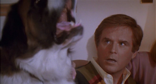 The film stacks the deck against dog haters from the beginning, opening on an ominously rainy night outside the “Pet Supply” warehouse where evil Dr. Varnick (Dean Jones) conducts his nefarious experiments on innocent puppies. A prime example of this deck-stacking occurs later in the film, when it is revealed just what Dr. Varnick has in mind for poor Beethoven: a munitions manufacturer wants him to “test” a new type of exploding bullet, to see the impact it makes on “big skulls.” While it can be argued that animal testing is worthwhile because of the potential human benefits gained from it, even the most dyed-in-the-wool dog hater would find it difficult to defend the scientific expediency of shooting a dog right in the goddamn face.