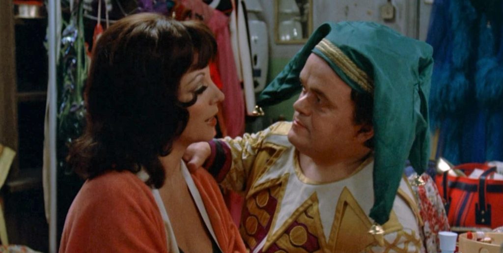 Lucy Carlesi: In a cinematic first, Joan plays a rich woman. She’s the aforementioned stripper, having moved on from a less than saintly past after meeting and marrying a wealthy Italian. Childbirth doesn’t prove much fun and her first attempt to cuddle her hefty newborn results in a scratched face. Things go steadily downhill and it’s not long before she’s intermittently seeing the dwarf’s face instead of her baby’s.