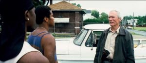 Sure, a healthy portion of the film’s appeal lies in sitting back, getting comfortable, and listening to an icon of the silver screen erupt like the minutes from a Klan meeting, but there’s more to this tripe than that. Not much more, but enough. Throughout, I couldn’t help but think that at long last, Clint’s made that final Dirty Harry picture, as if Callahan left San Francisco for good and retired to Midwestern suburbia. Only he stayed a bit too long and now, he’s the last remaining white holdout. But isn’t that like Harry, after all? Wouldn’t he stick around, sniffing about with self-righteous fury, waiting for just the right time to unearth his cache of weapons and treat us all to a suitably sinister one-liner?