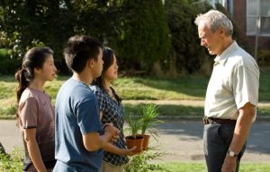 Beyond this obvious passing of the torch (Walt’s lone remaining purpose is to make Thao a man), we click off all the expected scenes: Walt’s children suggesting a senior community (and the resulting snarls), Walt’s confession to the long-suffering priest (who is just a younger version of the one from Million Dollar Baby), Walt finally warming up to the neighbors because they serve him food, and yes, the “foreboding cough” that leads to a doctor’s visit, the presence of some cryptic hospital records, and a half-hearted call to his estranged son, which leads nowhere, but is code for, “I’m dying, so let’s not leave anything unsaid.” Surely the blood-filled hacking is worst of all, and I swore years ago to hate any film that stooped to the level of a Victorian melodrama, though that emotion just can’t apply this time around.