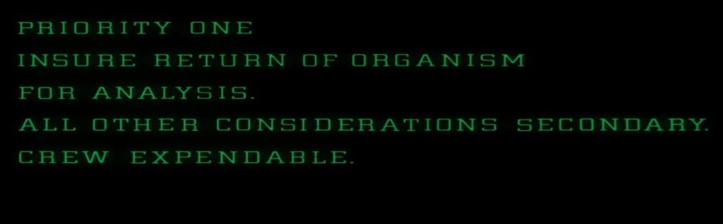 “You still don’t understand what you’re dealing with, do you? A perfect organism. Its structural perfection is matched only by its hostility. I can’t lie about your chances, but you have my sympathies”