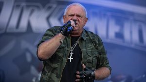 The pudgy, stout little German has survived a heart attack on stage and years of undeserved obscurity, but no amount of sympathy will ever grant him a face that can be viewed for more than three uninterrupted seconds. This is one fucker who would surely fell the Kraken. I’d say he hasn’t aged well, but he always seemed on the far side of 60 to me, even when he had the strength to ride a wrecking ball in one of his videos. With a voice like shredded glass blasted from a cannon, his vocals fit the crime, but by insisting on tacky fatigues and all known forms of sleeveless, he never acquired the masculine power we’d expect from a heavy metal hero. Interestingly, he’s the ugliest man ever to flirt with homoerotic imagery in the rock arena.