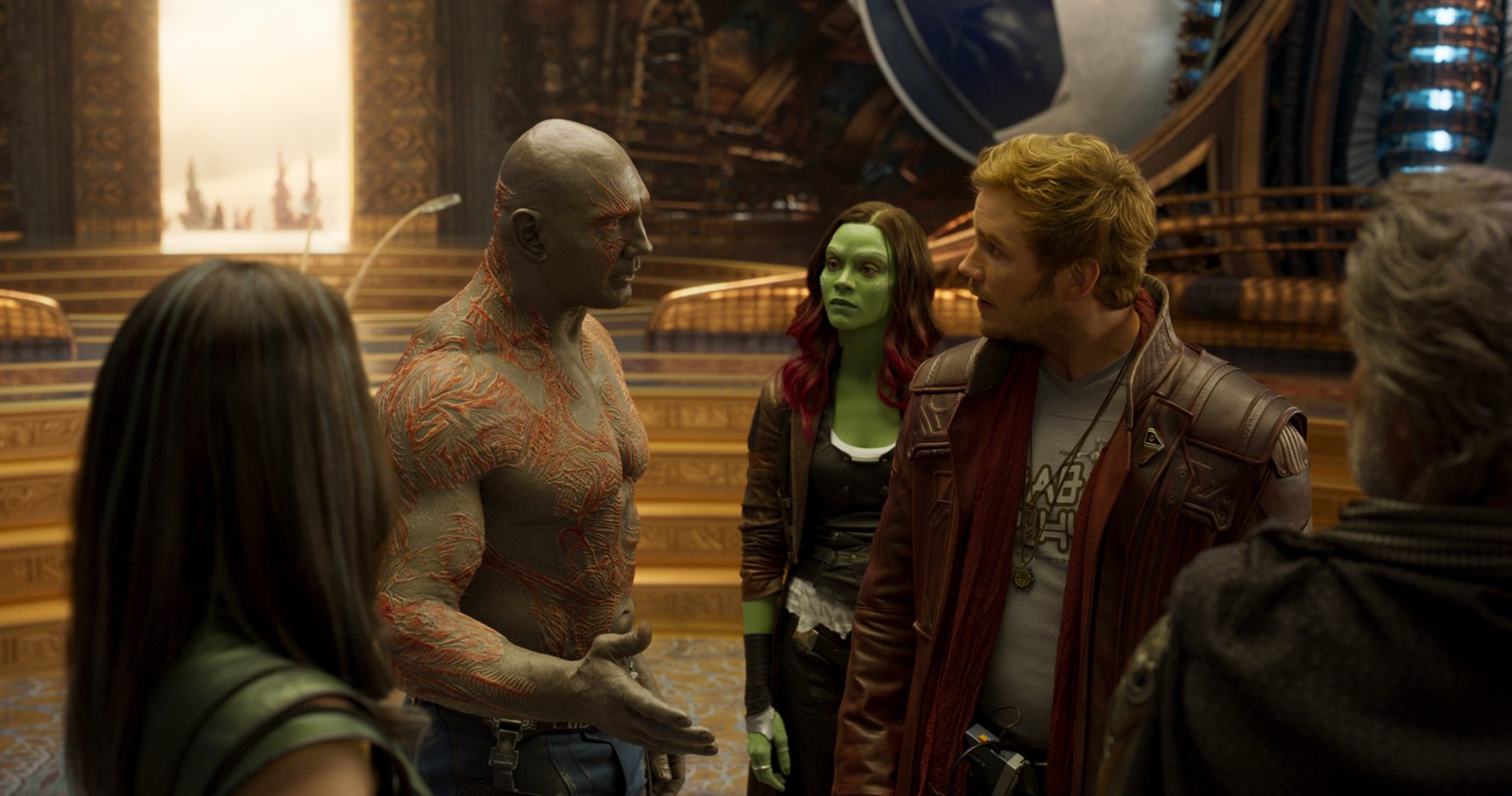 Of course, during that entire ninety minutes, you’re waiting for Ego to reveal how much of a dick he is because the last movie already told you as much. And that’s a long time to wait, so here’s what you have to put up with. For reasons that have nothing to do with creativity, Yondu (Michael Rooker) and Nebula (Karen Gillan) are heavily featured. What’s that? You loved those characters; what’s wrong with them being in the sequel? Well, like Maleficent and the Wicked Witch of the East, they’re really good guys, they’re just misunderstood and had bad childhoods. Fuuuuuuck. Why can’t evil characters just be evil? Not everyone is misunderstood. Yes, I know Yondu revealed a slight soft spot in the first film, but do you really want to see him near tears because another Ravager shunned him? Besides Yondu, you can watch Drax and Gamora (Zoe Saldana) rarely use their fighting skills and Drax over-laugh at everything while simultaneously insulting people because he doesn’t understand metaphors. Remember how funny that was in the first movie? Double-down on that four, Mr. Blackjack dealer.