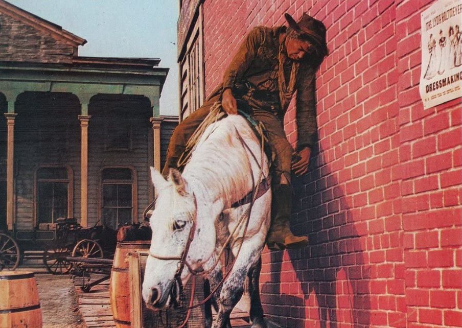 The gravelly voiced ex-marine, who won a Purple Heart in WW2, had long been punching heads, robbing banks and throwing scalding coffee in the face of a gangster’s moll before winning an Oscar for his dual portrayal of a tin-nosed killer and a drunken gunslinger in this comedy-western.