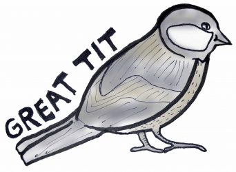 Great Tits are the largest tits, measuring about 5 inches long. The female Great Tit lays about 12 eggs and BOTH parents raise the little chicks.