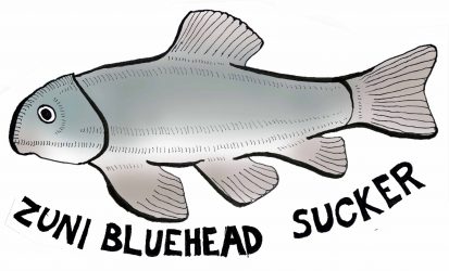 Zuni Bluehead Suckers are slender blue-headed fish that live in shady streams. They have unique scrapers in their mouths which they use to suck algae and invertebrates off of rocks.