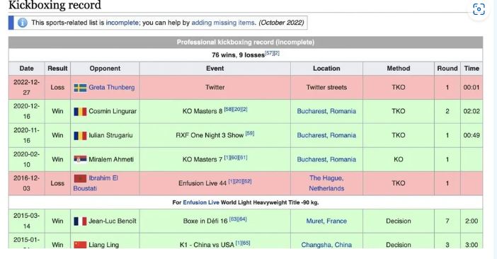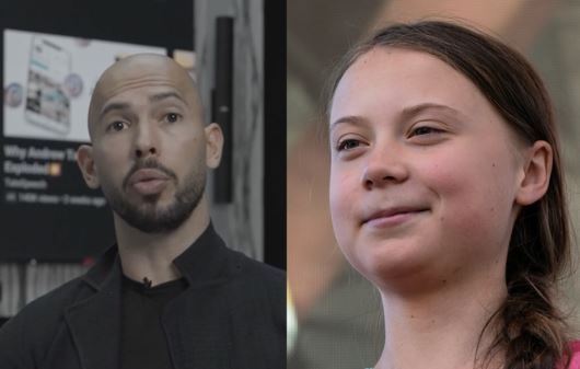 We have Andrew Tate, kickboxer, hero of the incels, an alleged rapist and alleged human trafficker and bloviator, who made the ominous mistake of pulling the wrong tail. Now it is understandable that a bully moron like Tate would be enticed to pick on a 19-year-old teen-aged girl. He was bragging about his stable of fuel-guzzling autos and his disdain for the environment.