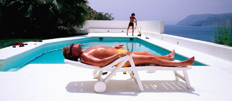 It’s fair to say that the cashed-up ex-crim Gal (Ray Winstone) has no regrets about moving to sunny Spain. He spends pretty much every day lounging by the pool working on his tan, eating calamari at his favorite restaurant, hanging out with friends, and dancing in the balmy night-time air with his beloved wife.