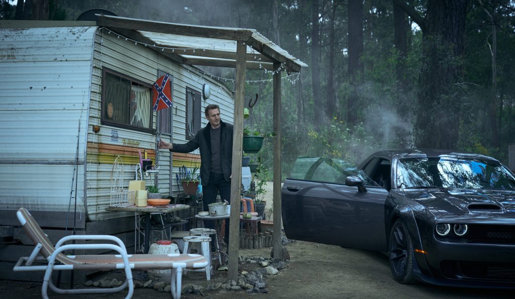 Travis Block (Neeson) is a fixer for the FBI, specializing in extracting deep cover agents whose cover may have been compromised or who may have lost sight of their mission. We first meet Block driving his Dodge Viagra, er…Challenger, en route to rescue an agent about to be murdered by a bunch of gun-toting, militant rednecks in the middle of the woods. Rather than go in guns blazing, Block sneaks in the back (in his extremely loud car) to talk to the agent through a back window in her trailer to tell her to be ready to run when he creates a diversion. Block has MacGyver’d a couple of things to blow up because even he knows he’s way too old for this shit.