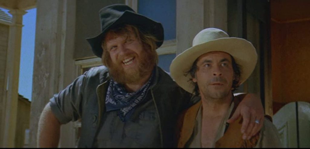 What the hell are these cats up to? Two fearsome bounty hunters Boss (Williamson) and Amos (Martin), who kill up to five outlaws at a time, take a break from their day job to forcibly outwit the piss-weak, double-dealing mayor of San Miguel and become the law. As you can imagine, the vast majority of locals are none too pleased about having a black sheriff and deputy, especially the bandit leader Jed Clayton (Smith). Please insert whatever Blazing Saddles quote you wish.
