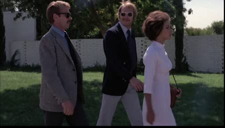 Elsewhere, women are used as honey traps and bikinied decoration, although special mention must go to the gangster boss’ topless girlfriend. At one point Ernie wakes him up at night to discuss Vito’s unfortunate gonad loss. The girlfriend remains in bed, obviously irritated by the interruption to her beauty sleep. There are many gratuitous shots of her turning over in bed, which must be applauded, but for some reason her breasts don’t move. And by that, I mean they refuse to wobble or jiggle in the slightest, let alone bounce. The plastic nature of her baps is so noticeable I had to replay those shots seventeen times just to make sure.