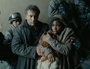 The central story is that of Theodore Faron (Clive Owen) and his quest to sprint young Kee (Claire-Hope Ashitey) to the safety of the Human Project, a near-mythical haven that, according to rumors and gossip, is the last, best hope for mankind. It is the resistance made flesh, and its members are said to offer safety and protection for the marginalized and the damned of a dying nation. Kee’s arrival is of the utmost importance because, shockingly to all, she is pregnant, an impossibility in this new world, but nonetheless a fact. That she is black and a non-citizen of Britain is crucial, because the England of the future has instituted a brutal, uncompromising campaign of internment for all those not of true British stock.