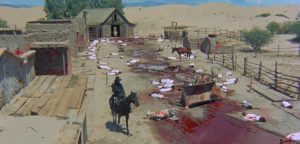 Still, I was quite prepared to be astounded (and even a little horny) as the film unfurled its opening frames; where a naked young boy travels with a mysterious stranger (looking like the product of a Kris Kristofferson/Grizzly Adams assignation) through a bizarre landscape of blood, corpses, and dust. Before our very eyes, we see women speared on poles, dead animals as far as the eye can see, and no fewer than three-dozen bodies hanging from the rafters of what appears to be a church. And when the hero forces the nude lad to gun down a dying old man, I felt that twinge of excitement that comes from embarking on a journey where only prudes and angels fear to tread. Was this the apocalypse? A vision of man’s essential wickedness? I was unsure, but more than willing to stay with such a loving view of the world. Soon, I saw Bunuel made flesh; men sucking on shoes, bananas sliced with swords, and a desperate beggar humping a woman made entirely of stones. No sense is offered, and I took it in the spirit of the intent. Eventually, however, a method must appear, and instead, the film wandered all over a windswept desert, where men are shot in the knees, birds are hacked to bits, pages of the Bible are used to wipe runny noses, and monks are stripped naked and savagely spanked. Again, I was on board for all of this, but had hardly made a dent in the films prohibitive running time.