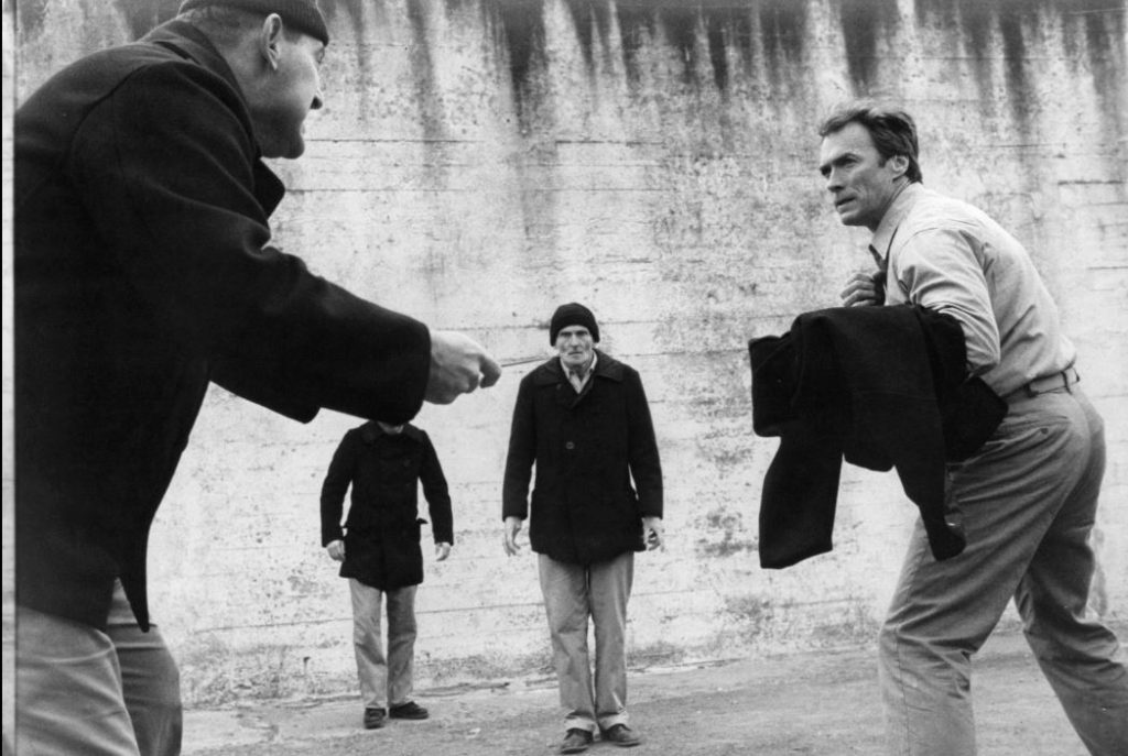 Escape From Alcatraz is not really an action film, even though there is plenty of action. The movie focuses on the story-telling of the rituals and rules of life in this harsh prison. What Escape lacks in action, it more than makes up for with outstanding character development. The villains, heroes and tragic heroes are easily identified, especially the sadistic and cruel warden, played by Patrick McGoohan. We also had Wolf, a dangerously unhinged prison bully played convincingly by Bruce M. Fischer, who had designs on Clint. You knew how this would turn out, as Clint is never anyone’s punk.