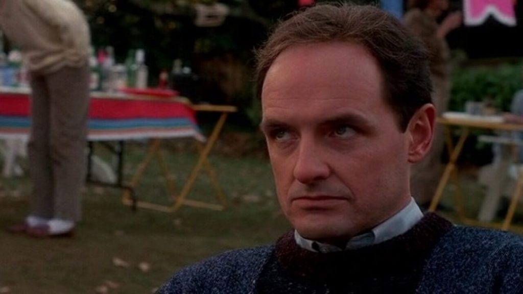 Jerry Blake (the superb Terry O’Quinn) is obsessed with cozily living in the warm bosom of a perfect family. He’s just found a new wife and set up home, but can’t seem to smother the suspicious feminine intuition of his step-daughter, Stephanie (the delectable, husky-voiced Jill Schoelen). It doesn’t help he calls her Pumpkin, a term of endearment any sixteen-year-old is bound to chafe at. Catching her kissing her new boyfriend on the front porch and loudly proclaiming him to be a punk rapist probably isn’t the smartest move, either. And if the gift of a puppy won’t do the trick, then what’s an upstanding citizen and mild-mannered real estate agent to do?