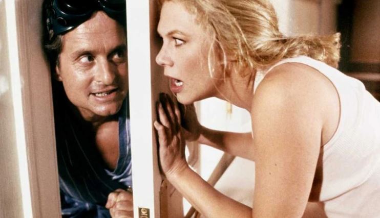 Douglas plays Tom Sanders, a former playboy turned Fatal Attraction everyman. He might’ve ‘seen more ass than a rental car’ but those days are long gone. Now he’s settled with a loving wife, two cute kids and a nice home. He’s also in line for a prestigious promotion at the tech company where he’s worked damned hard for the last decade.