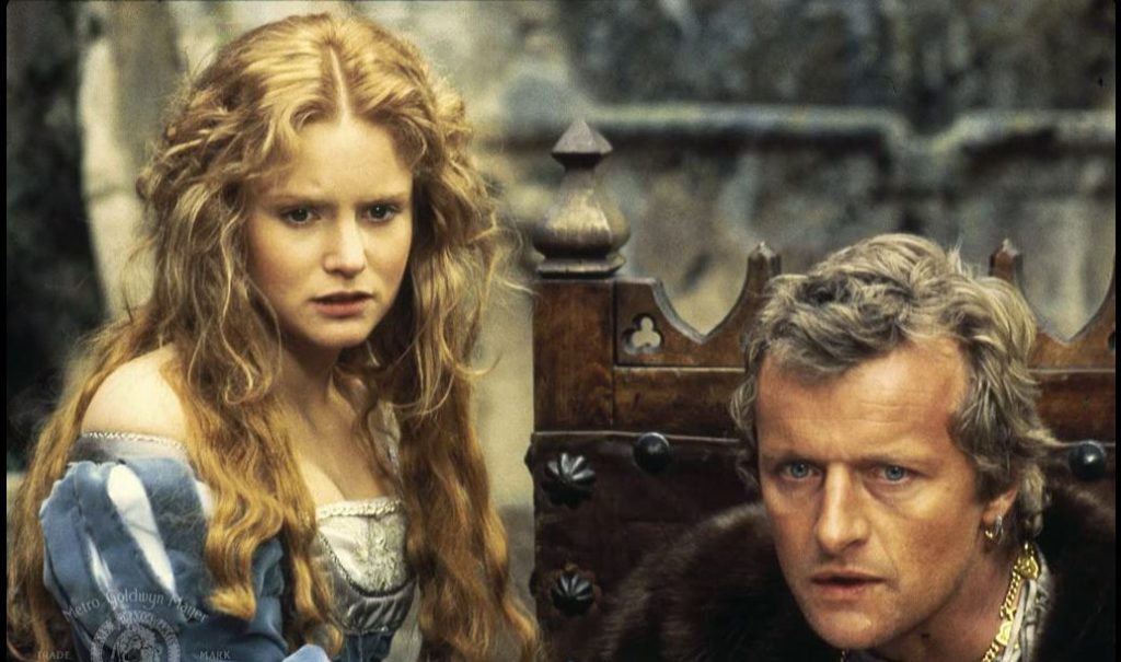 Things shortly get even murkier when she starts wooing her rapist. Of course, this could be a survival tactic, but her relationship with Hauer is blurred all the way through. At points, she definitely appears smitten. Whatever the case, she’s soon rubbing a foot into his crotch beneath the dinner table while sparking jealousy in his prostitute ‘wife’ and sexual competitiveness from another wannabe rapist. Then there’s the bath scene after her merry band of outlaws have conquered a castle in three minutes flat. Just watch her smiling and standing stark naked on its candle-adorned rim with both hands above her head looking down at her recent violator. “The whole world belongs to us,” she says with apparent glee. You have to say this is a confident, bold actress. Hauer would probably agree. “I’ve always wanted a girl with soft skin,” he says after she jumps into the steaming water. A moment later he’s pulling her toward him by her nipples.