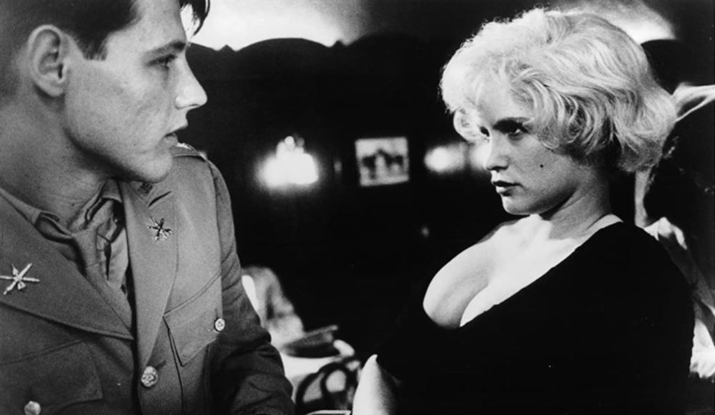 The ‘best’ was yet to come, though. Leigh first played a hooker in 1986’s widely panned Men’s Club, a small part that paved the way for Peak Leigh in 1989’s Last Exit to Brooklyn. If you’re ever curious about what it’s like to take a swim in the cinematic equivalent of a toilet bowl, this one’s for you. Set in 1952, Leigh plays a hardened bitch in an undersized bra on the streets of New York. Her first scene sets the unwavering tone in which she’s slapped by a pimp, eventually bawling at a concerned passerby: “Go fuck your mother! I hear she’s a good hump!” Leigh is tits-deep in a world of homophobic bullies, heroin, savage beatings, incandescent industrial relations, paid sex, self-loathing, closet gays, robberies, and marital rape. Just about everyone hates everyone and I’m not sure there’s a single sympathetic character in the whole shebang.