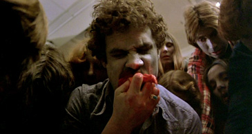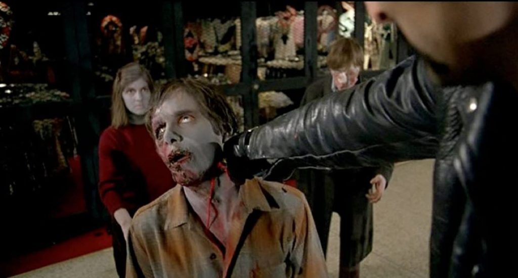 The big hit Dawn has a similar set up to Night in that it mainly portrays a siege. Things have gotten much worse, though, with the zombie strength in urban centers now nearing tipping point. This is ably demonstrated during a police raid on a low-income housing project, a botched operation that gleefully spews up exploding heads, the gnawing of dismembered limbs, racism, rampant brutality and suicide. Our four heroes flee the growing chaos via a stolen helicopter and hole up in a shopping mall.
