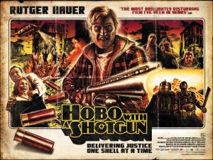Hobo with a Shotgun was not bad at all. It had a lot going for it before one frame was watched because of the title and the star role of Hauer. The plot was weak and the ending disappointing, but this film was about style, not story. As you might imagine, Hauer carried the film and was perfect as the craggy, derelict hobo. He always played it straight in the movie with no gratuitous cracks or self-aggrandizing lines. The strength, other than the obvious performance of Hauer, was the use of bright Technicolor to intensity the carnage and gore. The final scene paid homage to Kubrick and Spielberg’s Flesh Fair in Artificial Intelligence and ended badly for most involved.