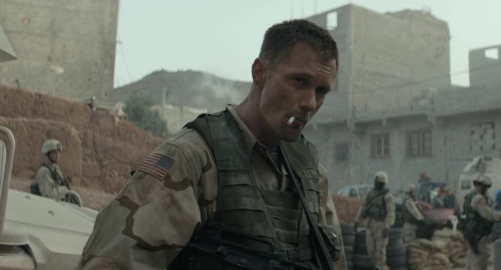 Of course all this is not before the preliminary dose of foreshadowing of that occultism. On his first night over (this is a remote village) Medora strips off in the bathroom, dons a wolf mask, snuggles next to the sleeping Core on the couch, then mimes being choked with his hand. Meanwhile her husband Vernon (Skarsgard) is in Iraq, unaware of both son and wife, and his travails are shown in a jarring wartime sequence that is the reverse in temperature, color palette and sexual permissiveness.