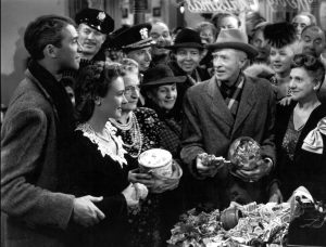 There were no really memorable scenes in the movie, just two plus hours of corn, but I did enjoy watching George stumble drunkenly around the town after Uncle Billy’s disaster with the bank deposit. As soon as the wingless rescuer and meddler hit the scene, it was all downhill as Clarence poisoned every potentially good subsequent scene with his mere presence.