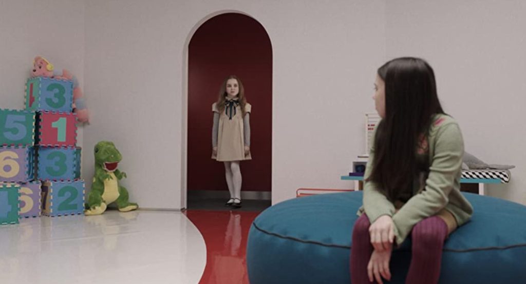 In addition to the threat of losing her job, Gemma is informed that her sister and husband have died and she has to take custody of her niece Cady (Violet McGraw). Wanting nothing to do with parenting and showing all of the sympathy of a book shelf to Cady, Gemma realizes if she finishes M3GAN then M3GAN can be Cady’s friend/psychologist/parent. The idea of technology raising children has been a moral panic now for decades and this movie asserts that M3GAN is the logical conclusion of that panic.