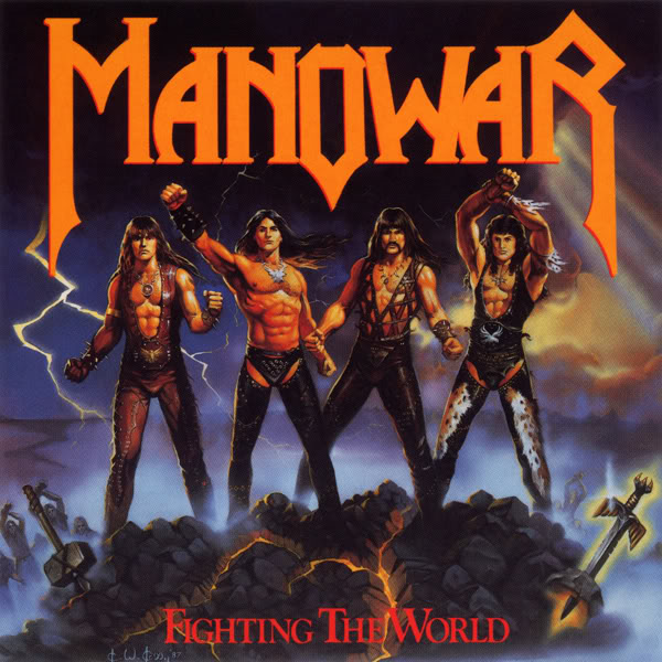 Maybe it was the pairing of everything essential about heavy metal music into one orgasmic triumvirate, or its straight-faced appeal to a wind having color, but in the end, its Manowar’s glorious album cover that set the world back on its axis. Entitled Fighting the World, it was perhaps the heaviest heavy metal depiction of all time, and few can challenge its central conceit: that when we’re being honest, loud, aggressive music is about reverting to a primitive, lawless state. Be it drum or guitar, the licks and pounding reveal a quest to once again don bearskin, our glistening skin exposed to a world that retreats in quivering fear. So empowered, we channel nature itself for our ends, usually something related to destruction and the smoke-filled ash heap of our foes. Its what actual steel gave us, and what 80s metal sought to replicate. In all, a rousing success, with crippling erections as an unintended bonus.