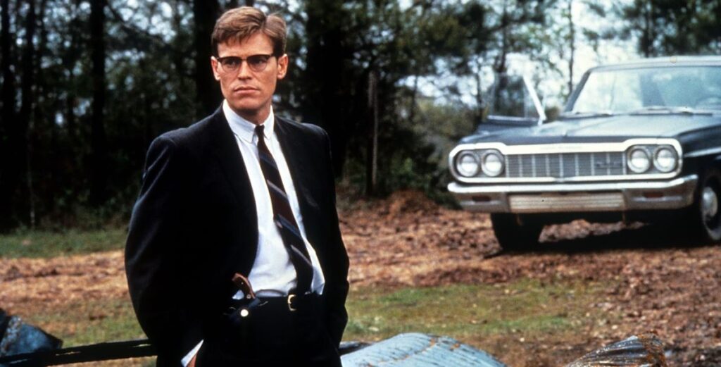 This movie is headed up by a magnificent cast, as both the good guys and bad guys are starkly convincing in their roles. The two FBI agents, Anderson (Gene Hackman) and Ward (Willem DaFoe) differ greatly in their philosophy and methodology of law enforcement, but both share the white-hot passion for justice. Anderson has walked the walk as a native of Mississippi and was once a County Sheriff near Memphis. Ward is a by the book liberal who thinks that “some things are worth dying for”. Anderson, who knows the Mississippi ropes, replies that “people down here think that some things are worth killing for”. We see plenty of the latter with beatings, lynchings, brutal intimidation, burning of churches, all courtesy of a well-entrenched KKK.