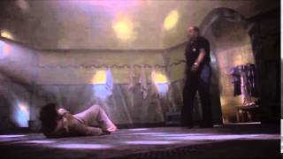 We first get to see him in action when the newly convicted drug smuggler Billy Hayes (Brad Davis) steals a blanket to try to keep warm. Hamidou backhands him to the floor and loosens him up with his trusty club. Next Billy’s naked on his back as his roped ankles are hoisted into the air to expose those lovely, oh so tender soles. Hamidou really thwacks his feet, only pausing to flick the sweat off his brow as the screaming Billy spins in agony.