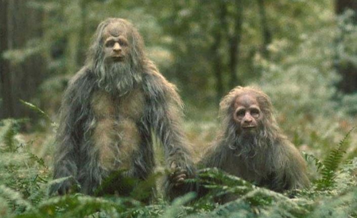 Though this and many other moments are obviously played for comic effect, there is also an undeniable sincerity to the whole project. The cast is utterly committed and, while completely unrecognizable under all the heavy prosthetic makeup, capable of conveying genuine emotional depth. Keough in particular shines as the matriarch of the shaggy little clan, and its most intelligent member by a mile. While the alpha, intoxicated on fermented berries, destroys their makeshift shelter when his rampaging libido urges him to fuck a load-bearing piece of the structure (there has to be a metaphor in there somewhere), she is the one to self-diagnose her pregnancy, and she shows a rudimentary understanding of physics and a quick learning ability throughout.