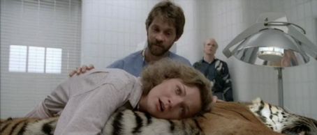 Is there a creepy Lionel Richie character hanging around? Tom Noonan is the Tooth Fairy, a whack job that likes to slaughter families in their homes. This somewhat antisocial habit probably makes him an even worse house guest than Lionel Richie dancing on your ceiling. When the Tooth Fairy first meets Reba in the dark room, he’s his usual nervous self before realizing her disability. This results in a body language sea change. His subsequent interaction implies she has the innocent power to draw out his better side. In a rather contrived episode, he then takes her to feel an anesthetized tiger awaiting some dental work. Er, what? He meets a blind girl and just happens to know someone who’s got a zonked out tiger the same night? Anyhow, it’s still a helluva scene as Reba runs her hands over its thick fur, touches its fangs and listens to its heartbeat. Her bewitchment is so convincing that it suggests it might be cool to occasionally be blind. Meanwhile, our fucked-up antagonist is leaning his head against the wall, apparently sharing the ecstasy of her sensations. At this point the movie is so good we almost forget he’s a serial killer. Later in bed he listens to her heartbeat, another reminder of her purifying power, a power that’s capable of making him cry.