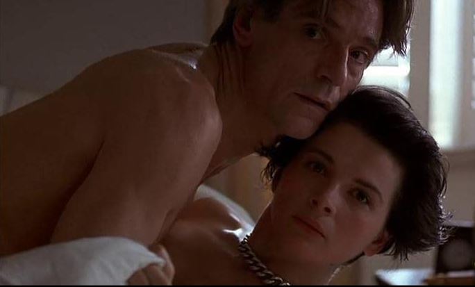 Most unbelievable bit: Irons and Binoche’s first meeting in which a brief, banal conversation results in them staring at each other, as if both have neon signs above their heads flashing: Woo! Woo! We’re gonna fuck! On the second equally dull meeting, it’s the same vibe, except a bit of spooky music is added. It’s like we’re being told their affair is predestined, that there are sexy forces at work which can’t be resisted. When they arrange a liaison a mere ten minutes into the flick, it’s another prolonged bout of staring. They fuck fully clothed and then stare again.
