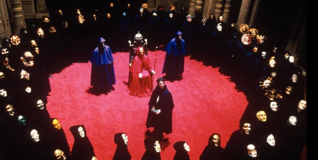 Glum Tom, apparently rocked to his core by this confession of pseudo-adultery, can’t help tormenting himself by picturing his wife with this seaman he’s never even met. Two minutes later he’s off on an erotic odyssey. Firstly, he bumps into a well-dressed, coy, polite, softly-spoken and sensitive street hooker, the likes of which exist only in movies put together by old, out-of-touch filmmakers. It’s a hideously phony sequence. From there on it gets dafter and more pompous. I think part of the problem is that Kubrick adapted a novella set in the early twentieth century. Perhaps such a ‘revelation’ of impure thoughts a hundred years ago would have had more believable consequences, but to set Eyes Wide Shut at the end of the century is a fatal mistake both in theory and execution.