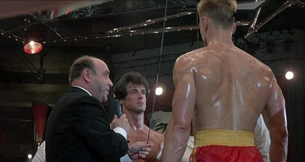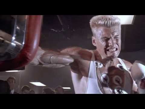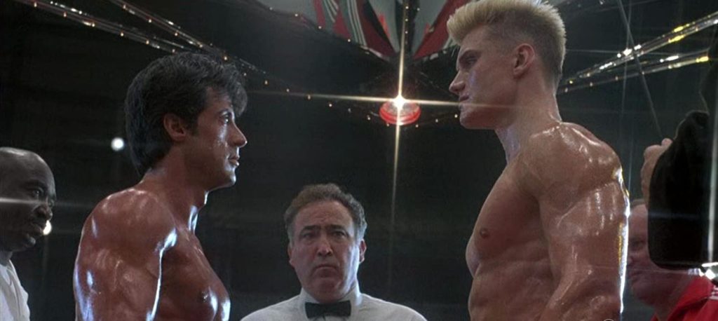 Then again, everything about Drago is impressive. Introduced before the glare of America’s media, he looks dashing in his army uniform with his impossibly broad shoulders. He’s a 261-pound ‘mountain of muscle’ and ‘the most perfectly trained athlete ever.’ He’s the undefeated world amateur boxing champion. There’s no need for any showboating or trash talk. Indeed, he barely utters a word but what he does say is priceless (“You will lose”, “I cannot be defeated”, “I defeat all men”, “I must break you” and that classic, chilling statement of indifference: “If he dies, he dies.”) Even his nickname The Siberian Express is the coolest in the history of the sport.