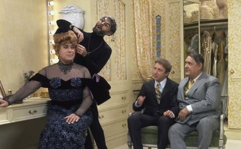 Leo, however, can only stare open-mouthed at her, obviously helpless before her voluptuous femininity. It’s not much different when he meets the play’s flamboyantly gay director, Roger De Bris (Hewett). The timid Leo is mortified, prompting him to deliver one of the movie’s best lines. “Max…” he says in a neutral voice through clenched teeth while blankly staring into space, “he’s wearing a dress.” The poor guy. He even gets flustered when inadvertently putting a hand on the bare ass of a marble statue.