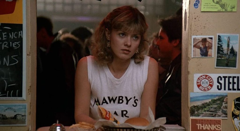 The tall, slightly shaggy-haired Beals is an appealing star, having to cope with everything from sexual harassment and jealousy to a broken radiator and an unfunny dwarf colleague who specializes in Polack jokes. She’s quietly dignified, feisty when necessary and looks bloody great eating lobster. It’s not hard to see why adolescent girls would think she’s cool as she takes no shit in her army jacket and hobnailed boots, sticks up for her besties, follows her heart and doesn’t forget to dazzle with her lithe, awesome femininity. A fair bit of Flashdance’s runtime might be given over to her stretching, running on the spot and kicking a leg above her head, but such sequences do capture the joy of movement and the exuberance of youth. Of course, the bright-eyed Beals is helped to no end by director Adrian Lyne’s well-composed visuals and Irene Cara’s glorious titular pop song. Sadly, the rest of Beals’ film career hasn’t added up to much, but back in the early 80s she took her passion and made it happen.