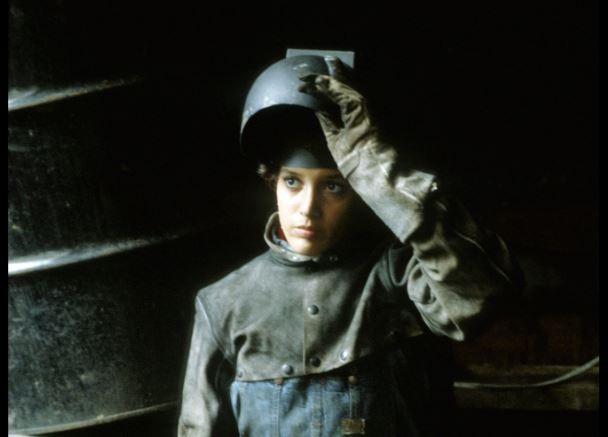 Beals is our dance-obsessed dreamer, a girl who lacks the training and confidence to sign up for a sniffy ballet school. When she’s not at work surrounded by thick smoke, ear-splitting noise, showers of sparks, hard hats and massive machinery, she keeps her hopes alive by cavorting at the local cabaret bar and grill. This even includes incorporating a shower into her stage act, a somewhat risky maneuver (given she twirls in high heels) that I’m sure the health and safety people would be interested in hearing about.
