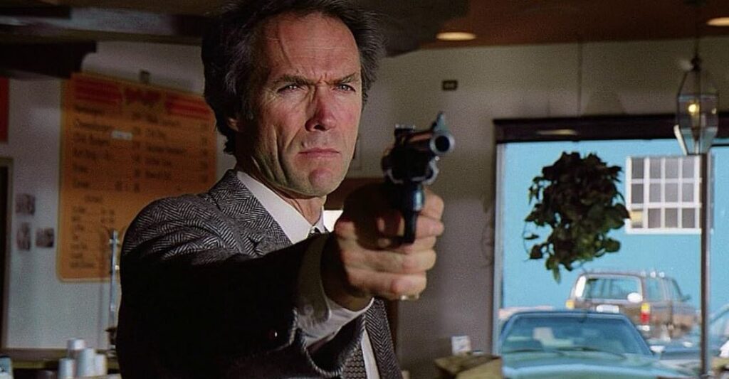 - “We’re not gonna just let you walk out of here,” Harry says grimly to another punk. “Who’s ‘we,’ sucka?” the hood foolishly replies, setting Harry up for the kill: “Smith and Wesson and me.”