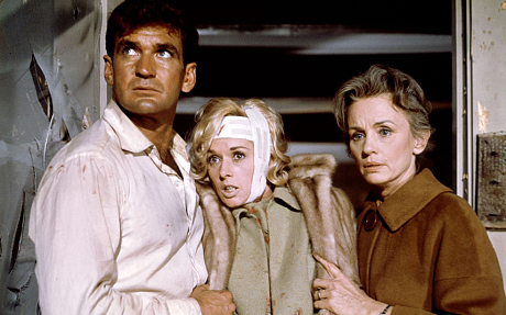 Hitchcock was at the top of his game by this point in his career, and The Birds was probably his most technically innovative work to date, but all of these innovations are in service of masterful storytelling. From the opening credits sequence, which simulates a bird attack on the viewer with its silhouetted birds flapping and squawking across the frame, the movie is ruthlessly effective in its approach. Its use of rear projection and other technical effects combined with practical ones must have been as big an influence on filmmakers like Steven Spielberg as its sense of pacing and suspense-building clearly was on Jaws. Likewise, the sequences of people trapped in diners or homes, fearing and fighting against an onslaught of vicious attackers, seems like a precursor to the zombie movie (and of course all the other When Nature Attacks movies that came in its wake) in the same way Psycho anticipated and influenced the slasher genre.